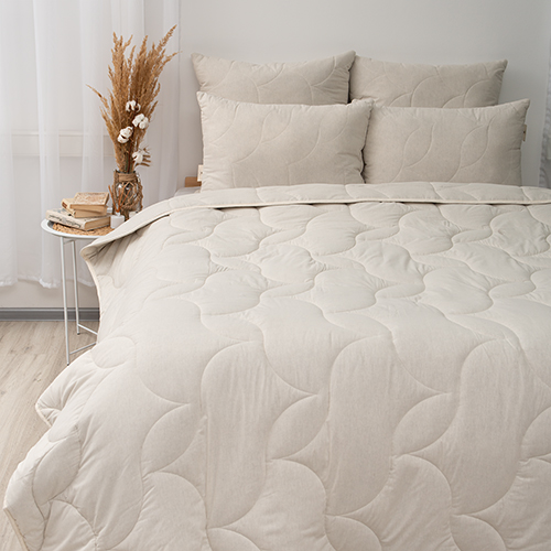 Линейка подушек и одеял «Чистый хлопок» выполнена из 100% хлопковой ткани без использования отбеливателей, красителей и другой химии, которая обычно используется при производстве для придания ткани более гладкой и ровной структуры. Ткань имеет натуральный бежевый оттенок, фактура - матовая с небольшими растительными вкраплениями, мягкая и тактильно приятная. Стёжка выполнена на многоигольной машине в виде абстрактных листьев, что придаёт изделию оригинальный вид и надежно фиксирует наполнитель, благодаря фиксации наполнителя изделия допустимо стирать на деликатном режиме при 30 градусах. За счёт натуральных материалов подушки и одеяла не электризуются, пропускают воздух и не теряют форму, прочные и долговечные. Наполнитель с содержанием волокон натурального льна 70% + ПЭ 30% идеальное сочетание пользы натуральных материалов и практичности синтетических для комфортного сна. Лён обладает бактерицидными свойствами, способствует профилактике кожных заболеваний, успокаивает, снимает стресс и позволяет организму быстро восстановить силы. Такой наполнитель поддерживает оптимальный баланс - в жару приятно холодит, в холодное время согревает. Изделия завершены фирменной и практичной упаковкой из рогожки натурального оттенка с фотопечатью, для подушек - сумка-конверт на молнии, для одеял тубус с ручкой на молнии.