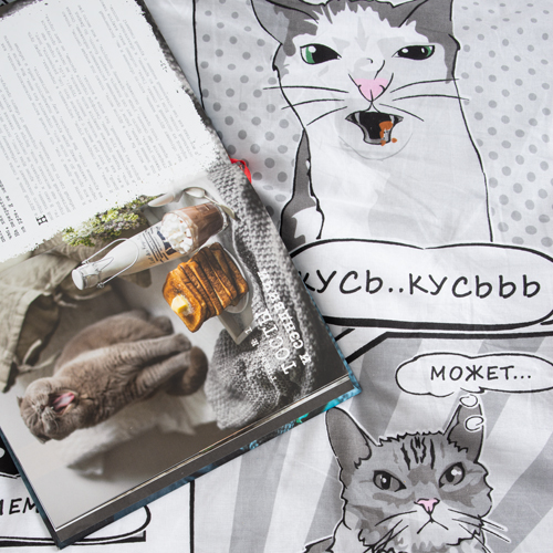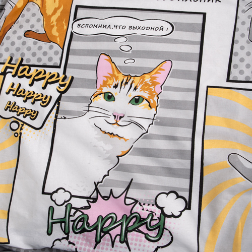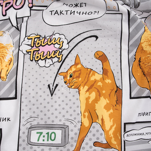 Комплект постельного белья "Традиция" изготовлен из набивного поплина плотностью 110 гр/кв.м. Поплин - хлопчатобумажная ткань, благодаря плотному переплетению нитей имеет высокую прочность и гладкость.Ткань мягкая и приятная к телу. Полотно, покорившее Европу, а за ней и весь мир, сегодня самый востребованный материал для постельного белья. Ткань не линяет, естественная усадка не превышает норму, обладает низкой сминаемостью, качество пошива фабричного уровня. Пододеяльник имеет прорезь, наволочки - клапан, простыня содержит открытые кромки. Дизайн "Коты мемы" входит в постоянную коллекцию. Комплект сшит из основной ткани. Предложенная комплектация может незначительно отличаться от фотоизображения.