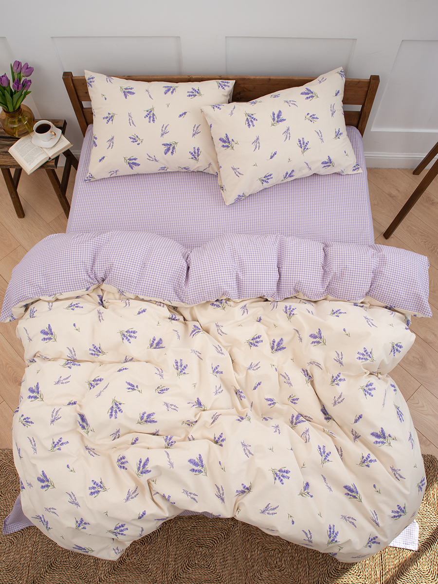 КПБ "Чистый хлопок" 1,5 спальный, наволочки 50х70, поплин, 100% хлопок, "Лаванда"