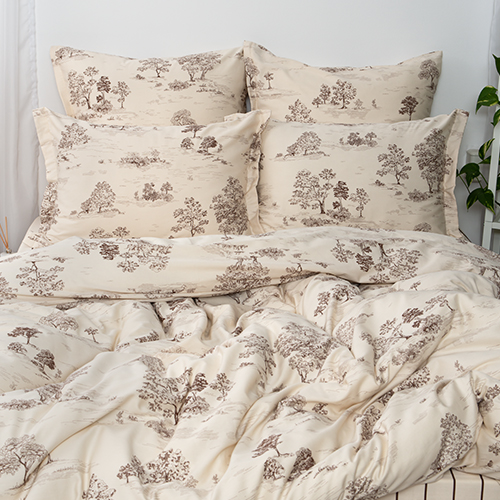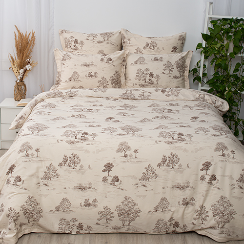 КПБ "Чистый хлопок" евро с простыней на резинке, 2 наволочки, САТИН, 100% хлопок, "Туаль де жуи (коричневый)"
