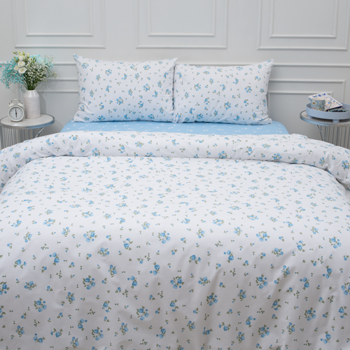 КПБ Simple life 2,0 спальный с европростыней поплин, 100% хлопок, пл. 110 гр./кв.м., "Мильфлёр (голубой) ВБ"